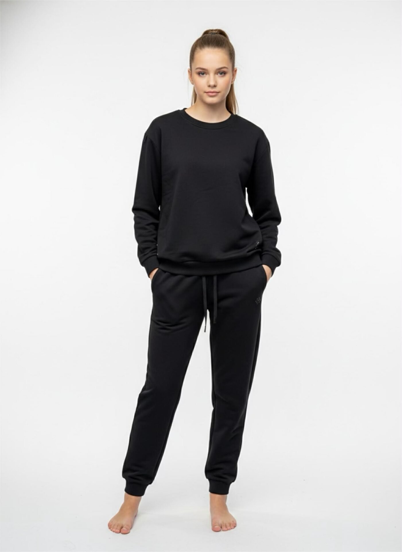 S dydis Per krūtinę 100 cm Džemperio ilgis 57 cm. Per klubus 95 cm Kelnių ilgis 115 cm
