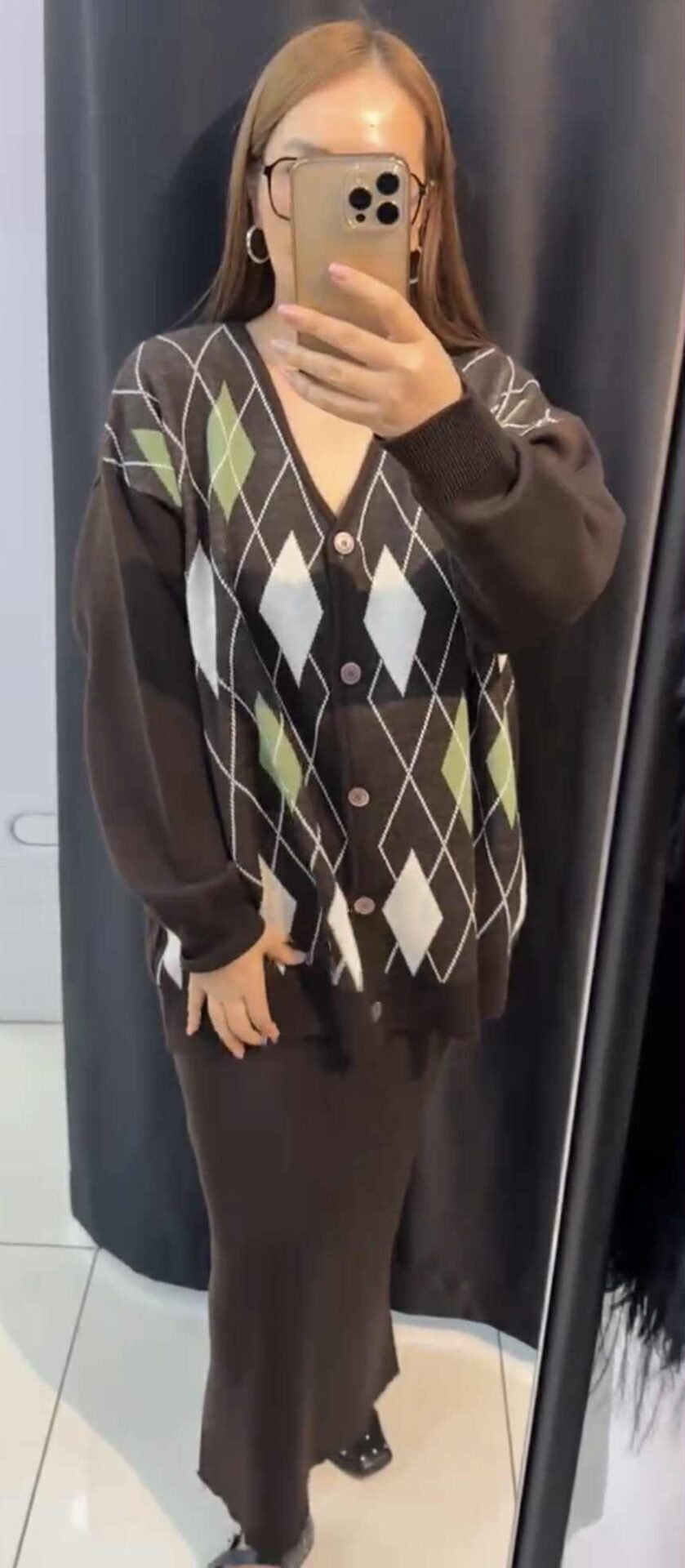 Kardiganas per krūtinė 140-145 cm, ilgis 74 cm